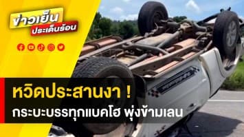 นาทีระทึก ! กระบะบรรทุกแบคโฮ เสียหลักพุ่งข้ามเลน หวินชนประสานงา