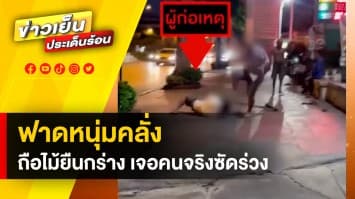 แตกตื่น ! หนุ่มคลุ้มคลั่ง ถือไม้โชว์กร่างกลางถนน เจอลุงคนจริงซัดร่วง