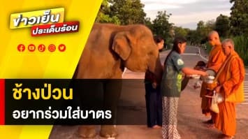 น่าเอ็นดู ! น้องช้างจอมป่วน อยากร่วมใส่บาตร แถมไม่ลดดีกรีความซน