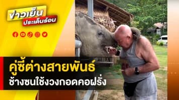 คู่ซี้ต่างสายพันธุ์ ช้างใช้งวงกอดคอฝรั่ง แต่เป็นเพื่อนกันแค่ตอนกิน