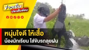 ตัวนี้ให้น้อง ! หนุ่มใจดี ให้เสื้อน้องนักเรียน ใส่ขับรถลุยฝน