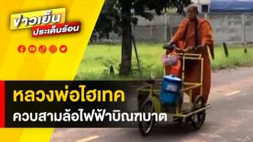 ซิ่งจีวรปลิว ! หลวงพ่อไฮเทค ควบสามล้อไฟฟ้าออกบิณฑบาต