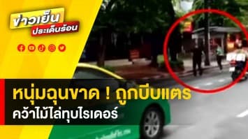 กระบะฉุนขาด ! สาวหมัดต่อย - คว้าไม้ไล่ทุบไรเดอร์ เหตุไม่พอใจ โดนบีบแตรใส่