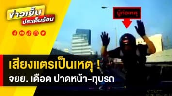 มอเตอร์ไซค์เดือด ! ใจบาง ทนเสียงแตรไม่ได้ ปาดหน้าดักทุบ - ถ่มน้ำลายใส่รถ
