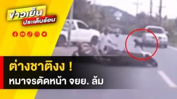 ไทยแลนด์โอนลี่ ! เจ้าตูบวิ่งตัดหน้า ชนมอเตอร์ไซค์ชาวต่างชาติล้ม ทำเอางง