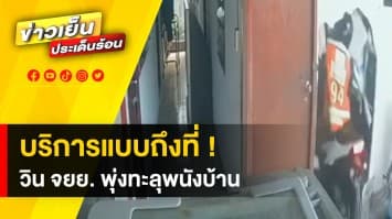 ยิ่งกว่าหนัง ! วินมอเตอร์ไซค์ ซิ่งรถเร็วแรง ทะลุผนังบ้านพังเละ
