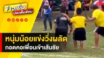 สีสันกีฬาสี ! หนุ่มน้อยแข่งวิ่งผลัด กอดคอเพื่อนเข้าเส้นชัยพร้อมกัน