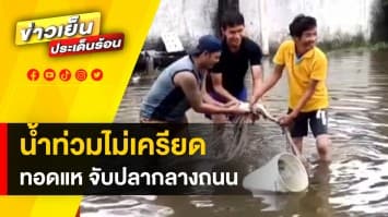 น้ำท่วมไม่เครียด ชาวบ้านทอดแห จับปลากลางถนน !