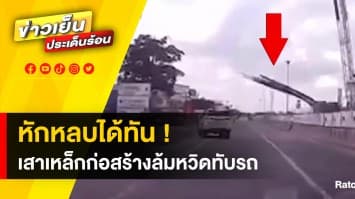 ลุ้นระทึก ! เสาเหล็กสร้างสะพาน ล้มเกือบทับรถ เคราะห์ดีมีสติ หลบทันหวุดหวิด