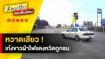 ระทึก ! เก๋งขาวซิ่งไม่แคร์โลก ฝ่าไฟแดงปาดหน้ารถคันอื่น หวิดถูกชน