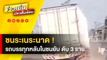 รถบรรทุกหลับใน ! พุ่งข้ามเกาะกลาง ชนยับกระบะ-เก๋ง ดับสลด 3 ราย
