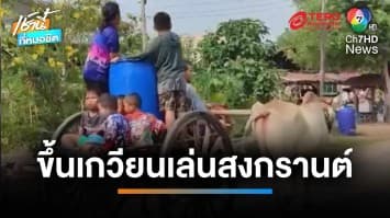 ฮือฮาทั้งหมู่บ้าน หนุ่มขี่ “วัวเทียมเกวียน” พาเด็กเล่นสงกรานต์ | เช้านี้ที่หมอชิต