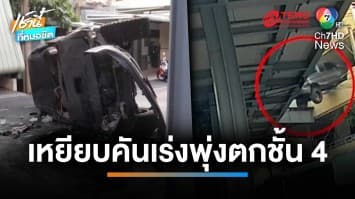 ระทึก ! สาวใหญ่ตกใจ เผลอเหยียบคันเร่งพุ่งชนกระบะตกชั้น 4 หวิดทับ จยย. | เช้านี้ที่หมอชิต