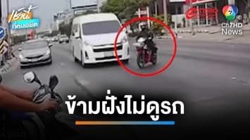 ข้ามถนนไม่ระวัง รถ จยย.ซิ่งข้ามฝั่ง เจอรถตู้ทางตรงชนกระเด็น | เช้านี้ที่หมอชิต